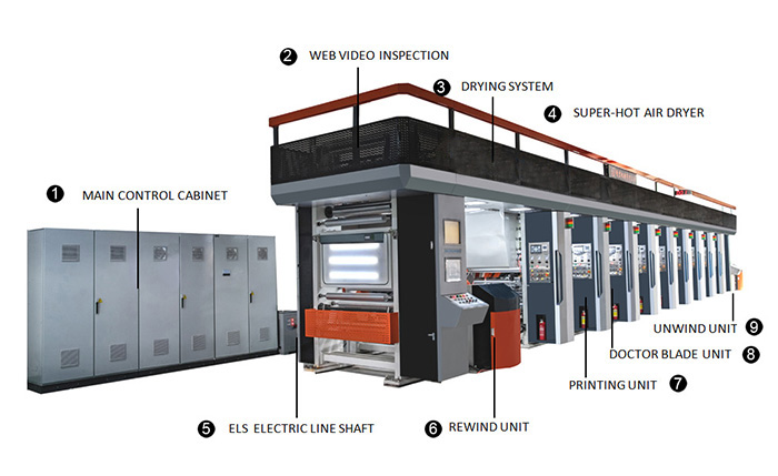 配置(8色凹版印刷機)電子軸凹版印刷機